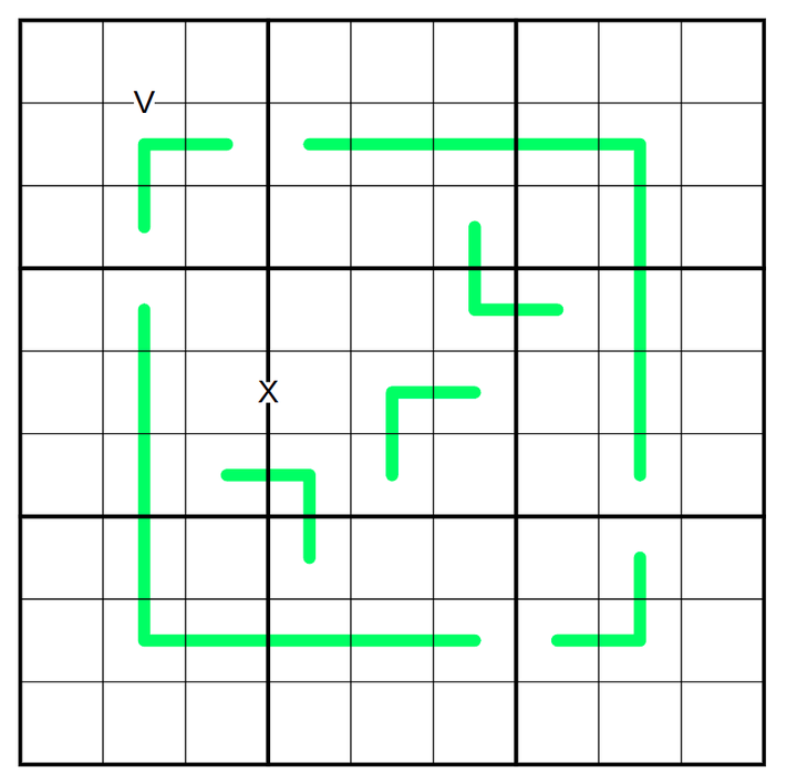 2. XV Sudoku Rules Apply: Digits separated by an X must sum to 10 and digits separated by a V must sum to 5. Not all Xs and Vs are given